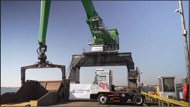 • As part of DEEP’s DERA Awards in 2022, SMM New England Corp. (DBA Sims Metals) received $607,400.10 toward the scrappage and replacement of a 2004 diesel-powered scrap material handler with an electric equivalent (See photo titled “ScrapMetalHandler”).