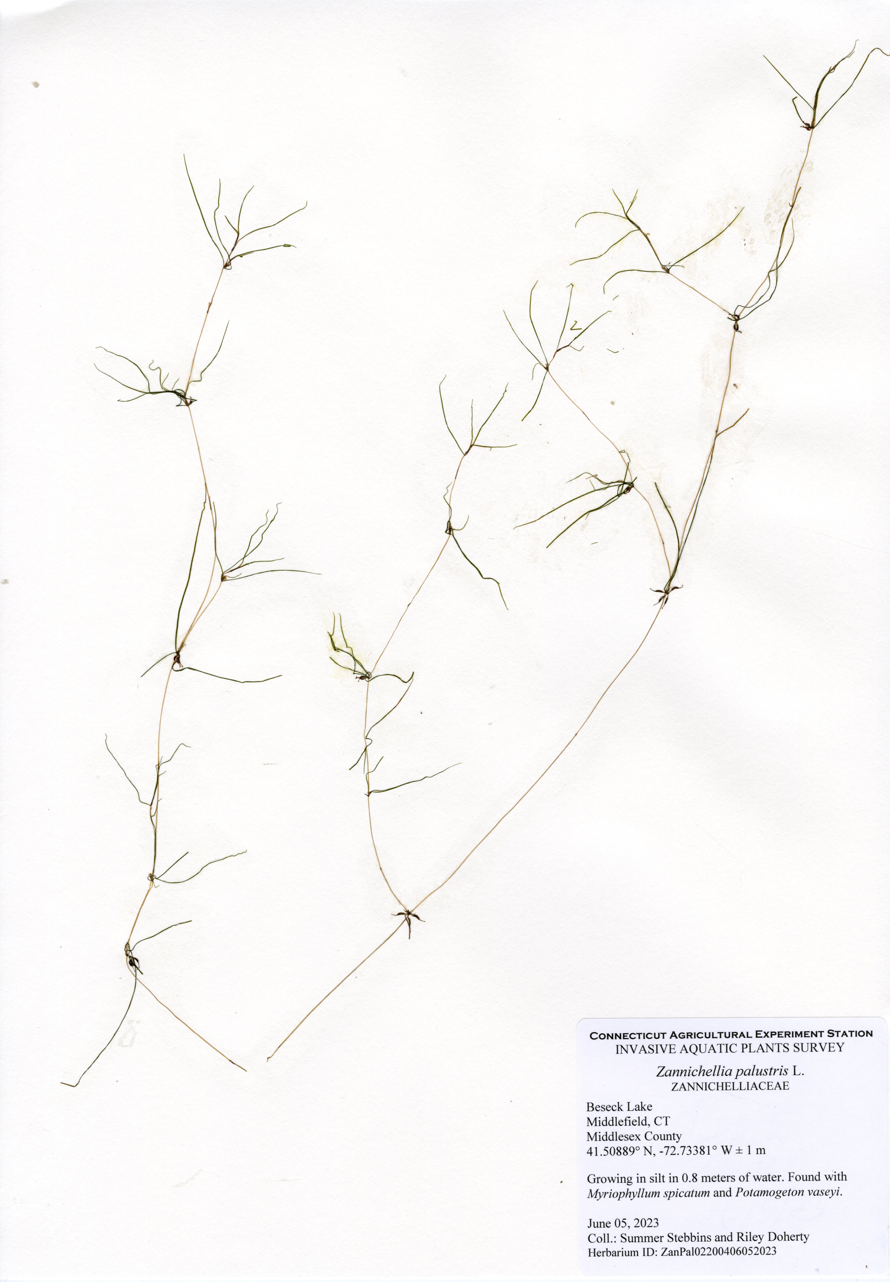 A total of 18 native species were found in 2023 comparing to 11 in 2004, 17 in 2011, and 18 in 2017. They included pickerelweed (Pontederia cordata), small pondweed (Potamogeton pusillus), horned pondweed (Zannichellia palustris), arrowhead (Sagittaria species), waterwort (Elatine species), cattail (Typha species), slender naiad (Najas flexilis), coontail (Ceratophyllum demersum), rush (Juncas species), Canadian waterweed (Elodea canadensis), spikerush (Eleocharis species), flat-stemmed pondweed (Potamogeton zosteriformis), western waterweed (Elodea nuttallii), bur-reed (Sparganium species), eelgrass (Vallisneria americana), and primrose-willow (Ludwigia species). Native species were abundant throughout the lake but were never considered a nuisance.