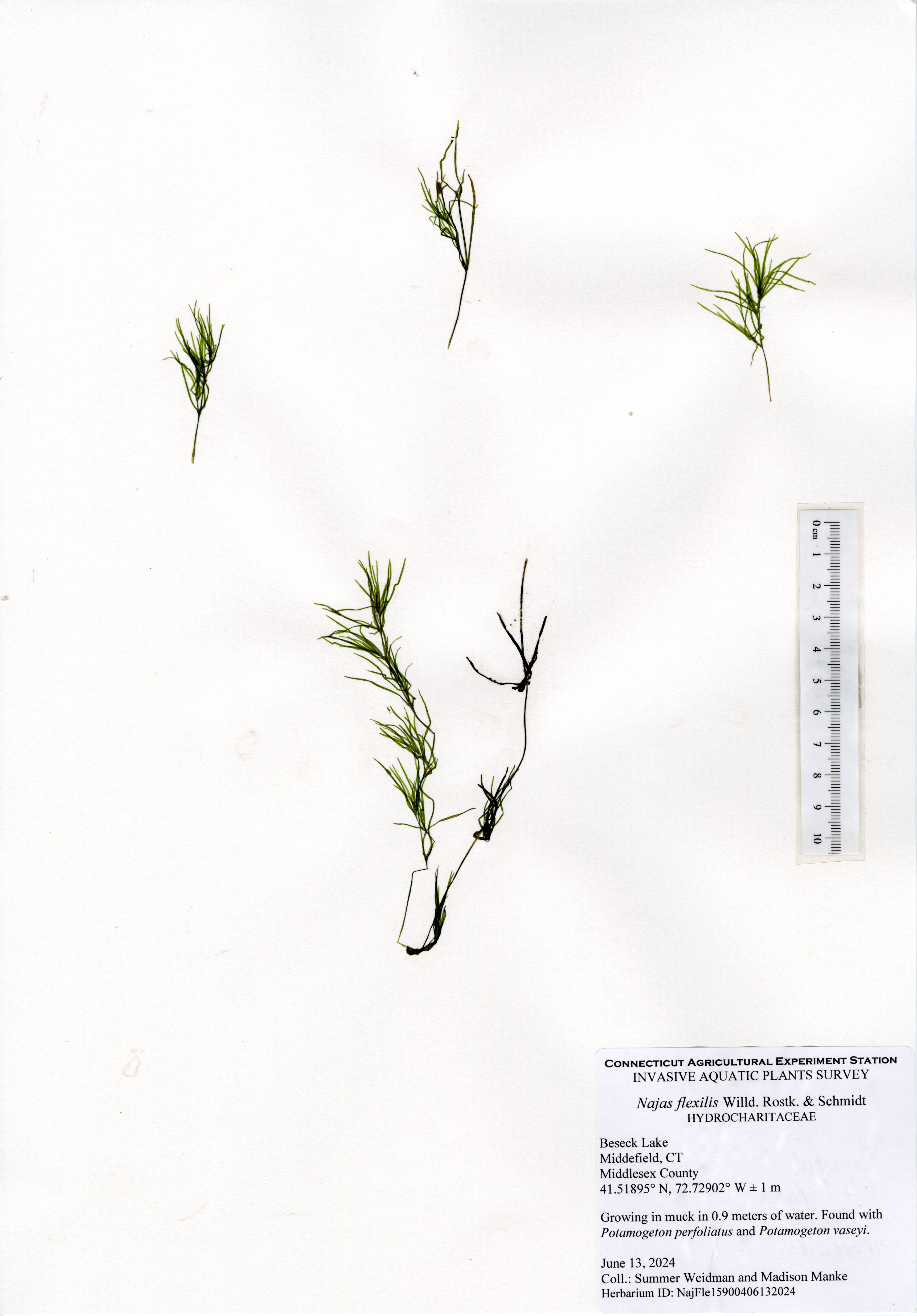 A total of 14 native species were found in 2023 comparing to 11 in 2004, 17 in 2011, and 18 in 2017, 18 in 2023. They included western waterweed (Elodea nuttallii), slender naiad (Najas flexilis), cattail (Typha species), small pondweed (Potamogeton pusillus), arrowhead (Sagittaria species), Canadian waterweed (Elodea canadensis), pickerelweed (Pontederia cordata), waterwort (Elatine species), spikerush (Eleocharis species), water smartweed (Polygonum amphibium), free-floating common duckweed (Lemna minor), and an unidentified sedge. Native species were abundant, but never became a nuisance with the most common species being state-listed Vasey’s pondweed and clasping leaf pondweed.