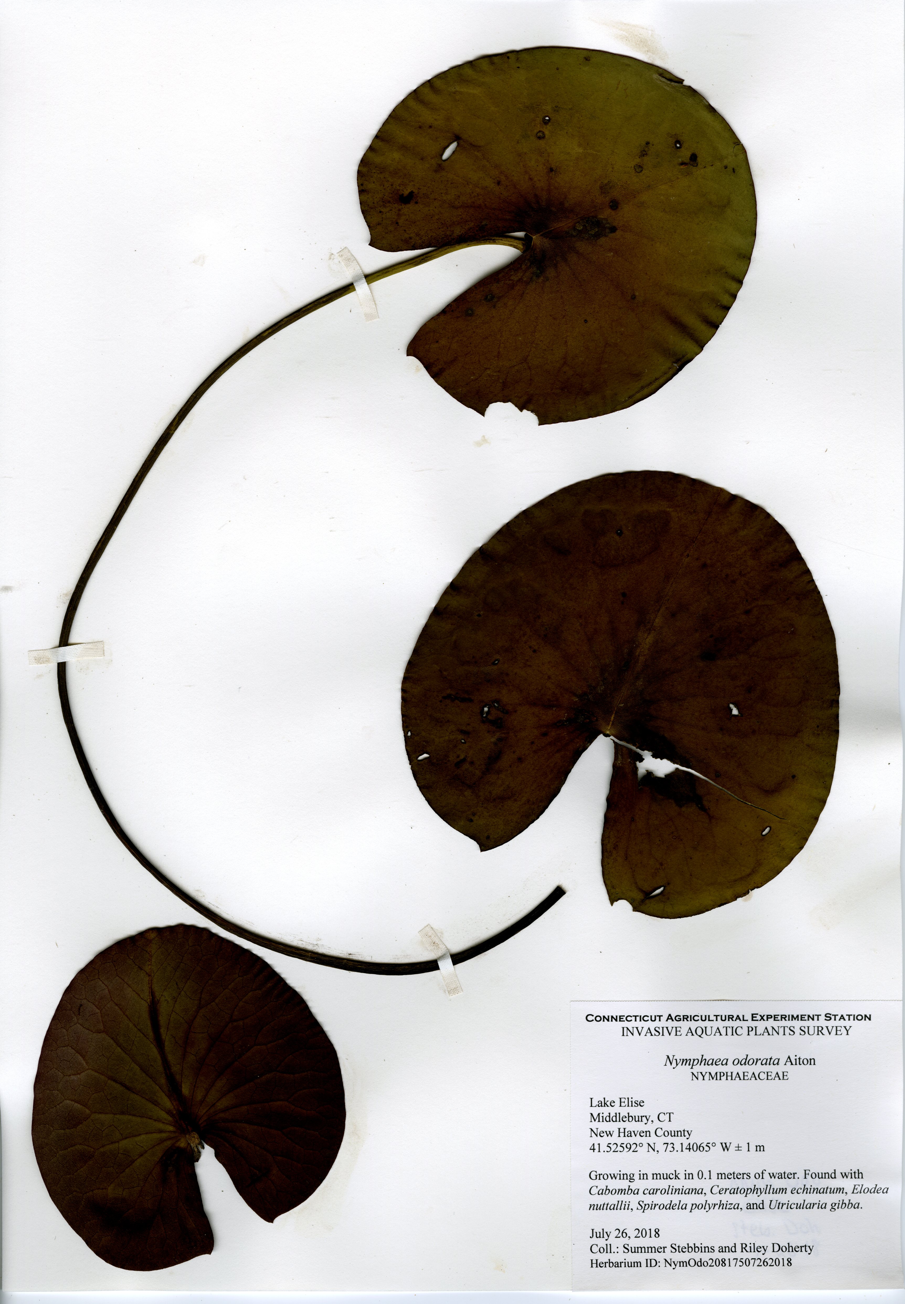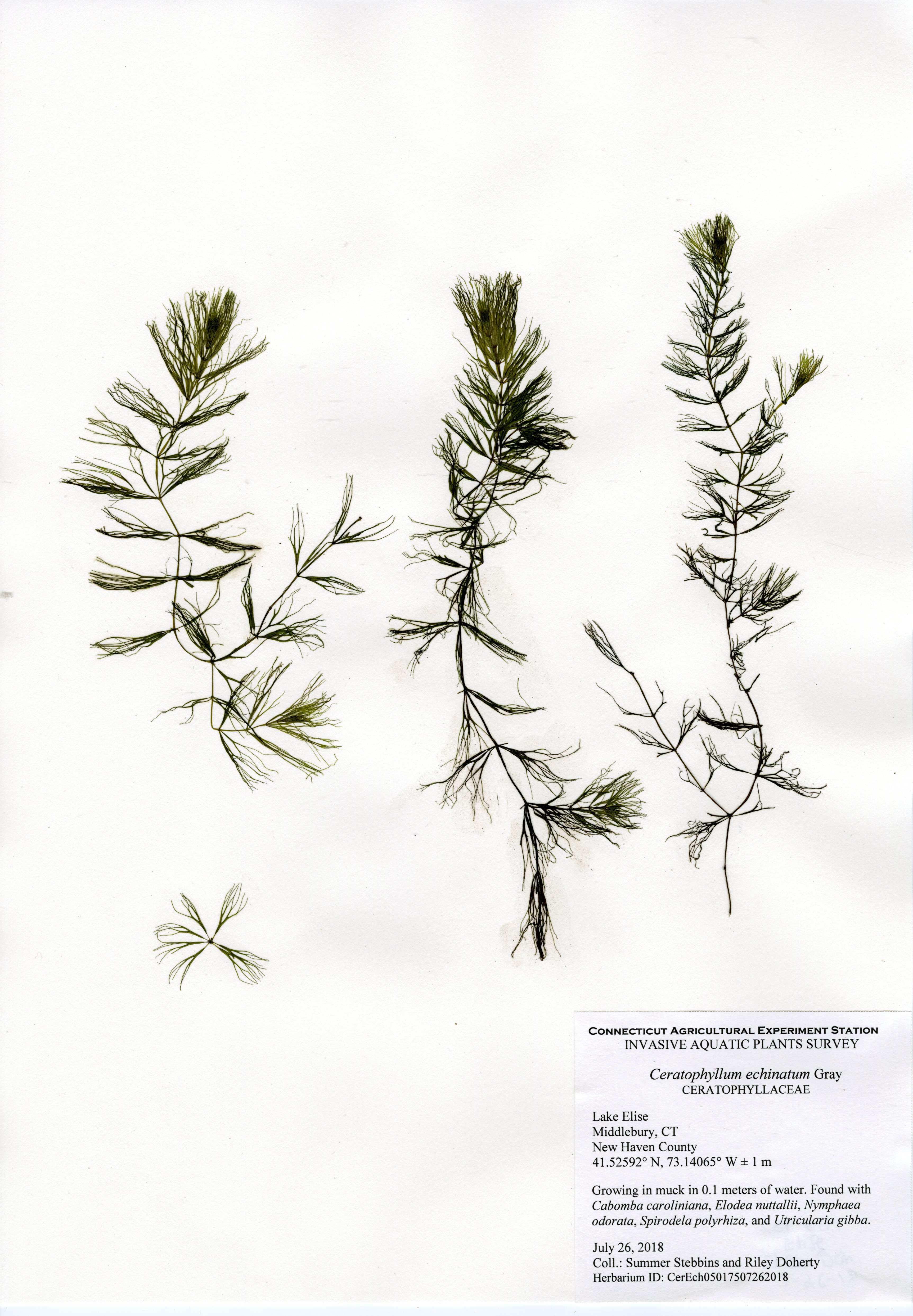 In 2018, CAES IAPP performed a resurvey of Lake Elise, the first survey done in 2011. Ten species were found, a decrease from fifteen in 2011. The same invasive species, fanwort (Cabomba caroliniana), was found in 2018, though at a much lower abundance. In 2011, it formed a thick ring around the entire perimeter, but in 2018 it was much patchier. Fanwort was still the dominant species in the lake, but the nine native species were more abundant in the northeastern portion of the lake. Overall, the aquatic plant abundance was less than found in 2011, with very little found along the western and southern perimeter.