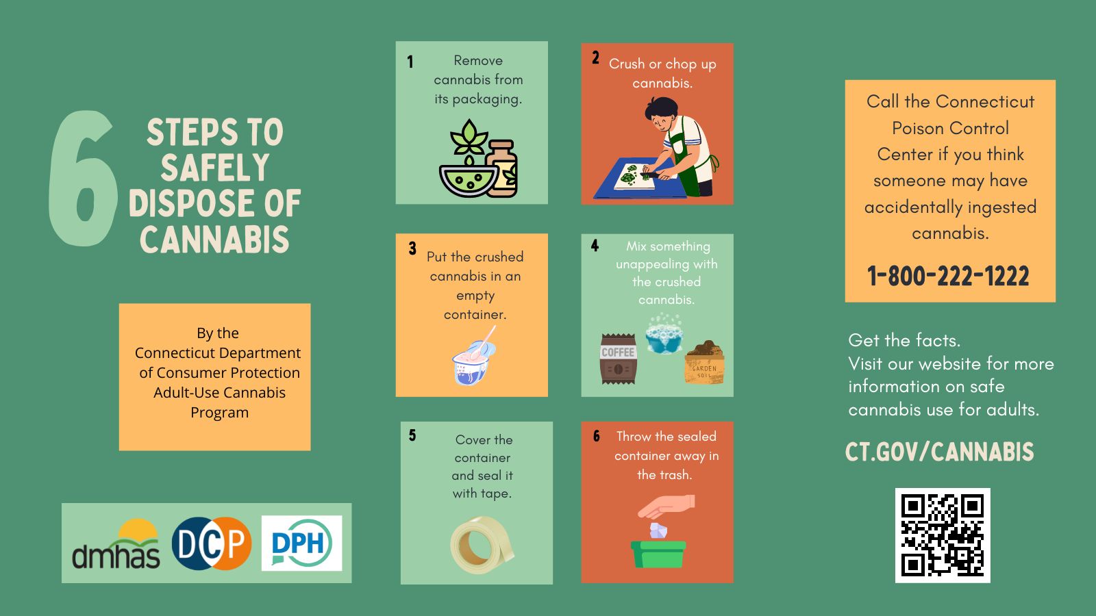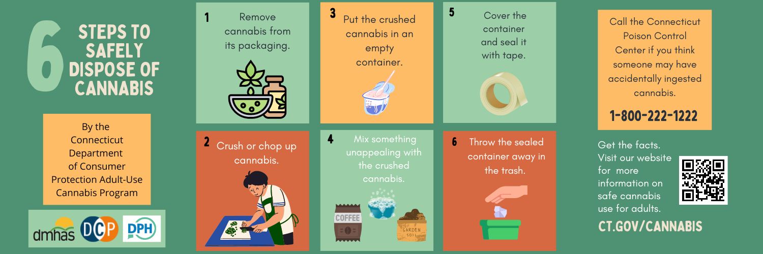 If cannabis packaging is recyclable, throw EMPTY and CLEAN containers away with other recyclables. If the packaging is not recyclable, throw the EMPTY package away with the regular trash. Do not flush cannabis products or packaging down the sink or toilet.