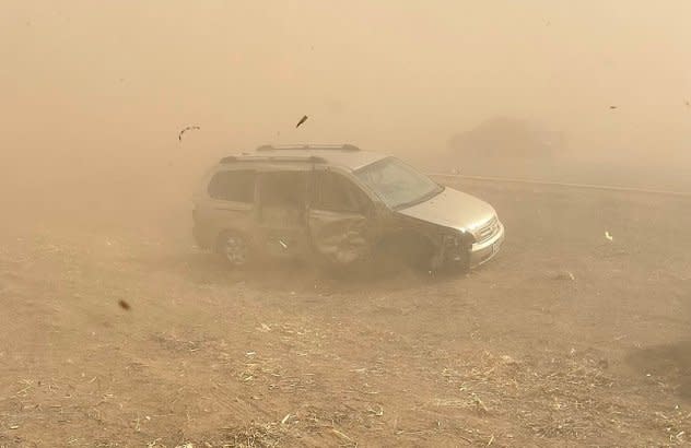 Oklahoma. Powerful winds contributed to a dust storm that caused a 10-car pileup on February 14, 2023. Photo by: AccuWeather.