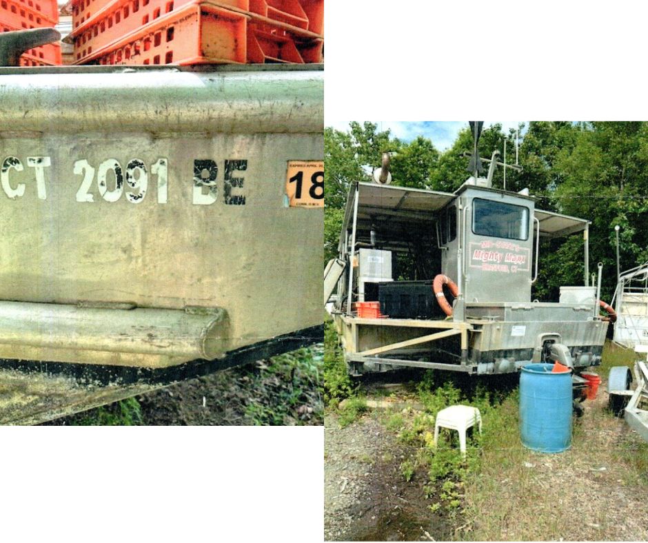 “Documented” vessels are vessels that are or were numbered (registered) with the Coast Guard. They are larger vessels that will likely have a name and hailing port painted on the back of the vessel, and are unlikely to have a “CT” registration number on the front but they may still display a Connecticut registration decal. There are special rules for dealing with an abandoned vessel that is or was documented. If you are unsure if the vessel you are dealing with is or was documented, feel free to call us at (860) 447-4354.