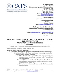 Recent summer weather has been very conducive for boxwood blight, a devastating infectious disease on boxwood. Our office has been receiving numerous inquiries and boxwood blight positive samples since this summer. Please find the linked Boxwood Blight Identification Guide and watch for typical symptoms on established, newly installed, or newly purchased boxwoods. If you find suspected boxwood blight symptoms, please send us samples by following Sample Submission Guidelines for a lab examination and confirmation. More information of boxwood blight can be found in Boxwood Blight - Information and News.