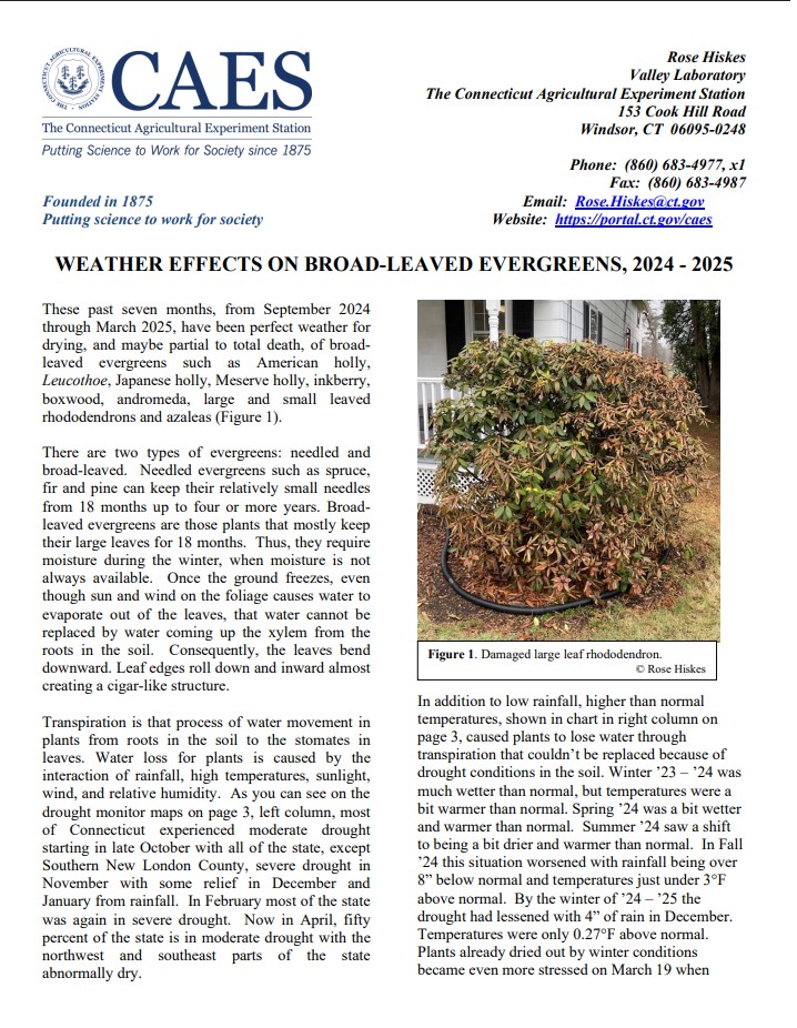 A New Fact Sheet - Weather Effects on Broad-Leaved Evergreens, 2024-2025