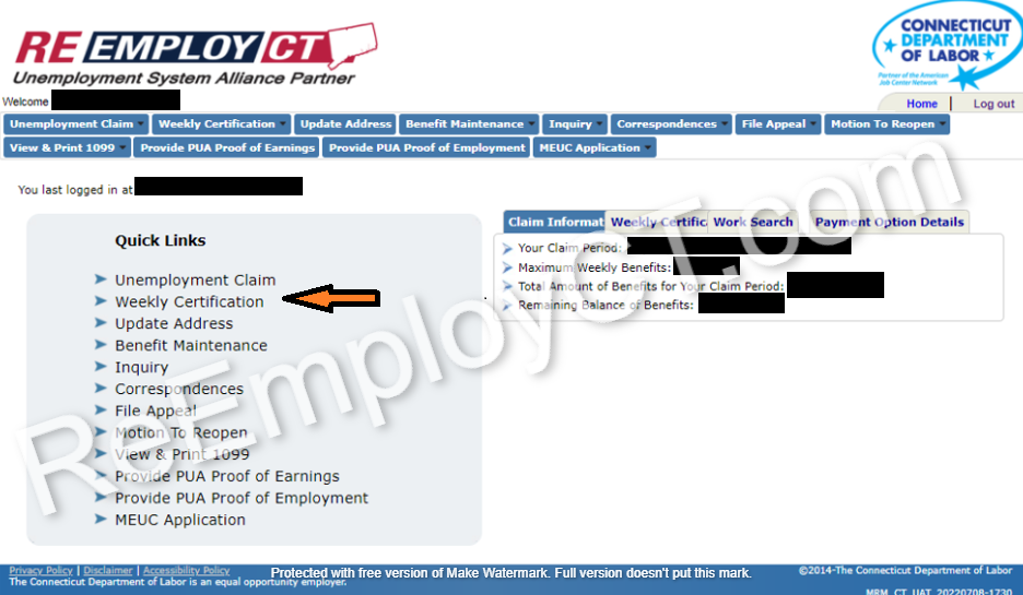 - If you have an active, continuous claim in ReEmployCT and have not reached the end of your benefit year, you are a weekly filer. As a weekly filer, use the Weekly Certification link in Quick Links on your account page. Do not use “Unemployment Claim”, you are not filing a new claim, you are filing your weekly claim. Claim weeks are Sunday through Saturday; you have until Saturday to file a weekly certification.