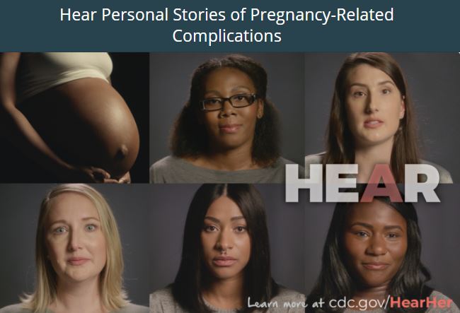 CDC's Hear Her Campaign seeks to raise awareness of potentially life-threatening warning signs during and after pregnancy and improve communication between patients and their healthcare providers. It helps increase awareness of serious pregnancy-related complications and their warning signs, empowers women to speak up and raise concerns, encourages women’s support systems to engage in important conversations with her and provides tools for women and providers to better engage in life-saving conversations.