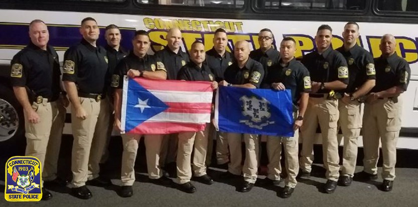 (HARTFORD, CT) – Governor Dannel P. Malloy today announced that Connecticut’s Department of Emergency Services and Public Protection (DESPP) has deployed 13 state troopers as part of Connecticut’s ongoing efforts to assist in Puerto Rico’s post-hurricane recovery efforts. The troopers, 12 of whom are fluent in Spanish, will be patrolling and providing security and traffic assistance in conjunction with the local police in Puerto Rico. The crew departed Bradley Airport early Monday morning.