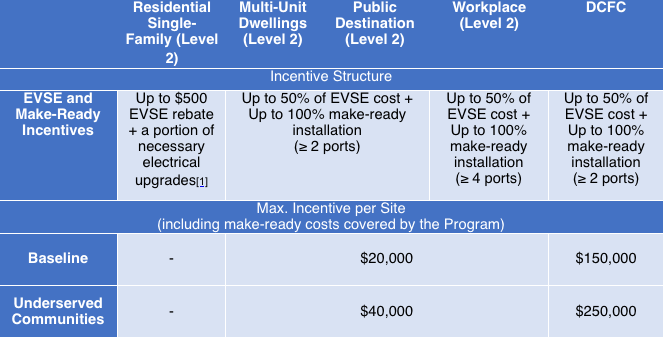 The EV Charging Program will offer incentives for the deployment of EVSE in five program areas, or market segments: