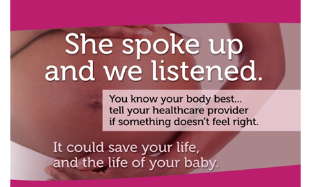 The goal is to encourage women to speak up during pregnancy, at birth and during the postpartum year about any concerns, and to encourage providers to listen actively to a women’s concerns. A woman knows her body best and how she feels.