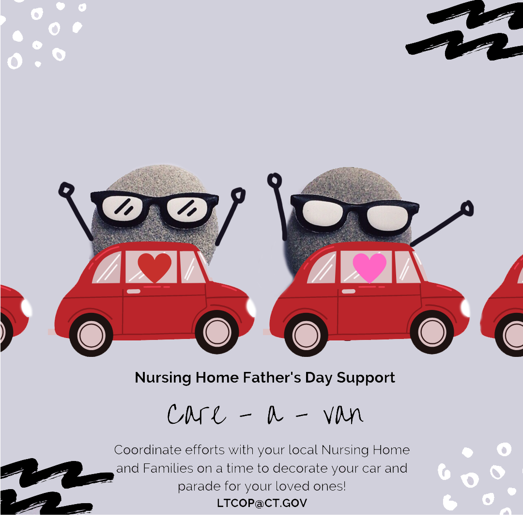 Coordinate efforts with your local nursing home, families and greater community to schedule a time to decorate your cars and parade for your loved ones! If you're posting your care-a-van to social media make sure to tag it to show others how to show Dad you love him while still keeping him safe.